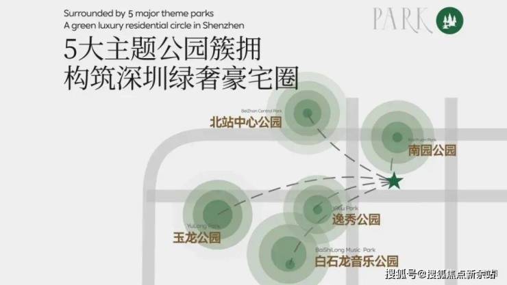 南园公园、北站中心公园、逸秀公园、白石龙音乐公园、玉龙公园环绕;