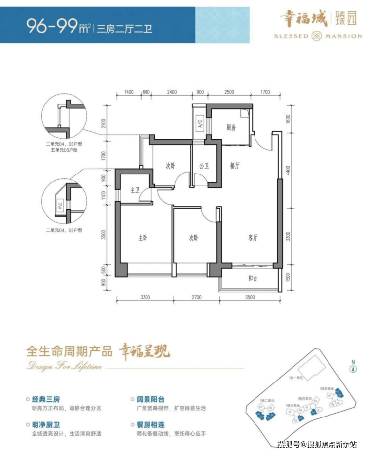 面积:96-99㎡三房两厅一卫