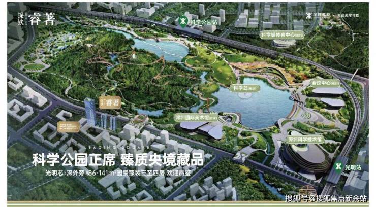 深铁睿著广场,位于光明区新湖街道光辉大道与华夏路交汇处东南角,地处光明中心区板块,紧邻占地208万平方米的科学公园,属于光明规划中“最宜居、居住板块最大”的片区。项目北侧与科学公园仅一街之隔,东、南侧为深圳小学光明学校狮山校区及初中校区,周边市政配套规划密集,如深圳科技馆新馆、国际美术馆等均在建设中,预计2026年前全面落成。