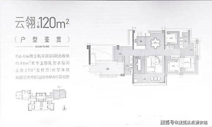 120㎡边户户型,南北对流双阳台设计主卧配置 270° 环幕飘窗可俯瞰城市景观;次卧连接空中花园阳台实现 "室内空间室外化";