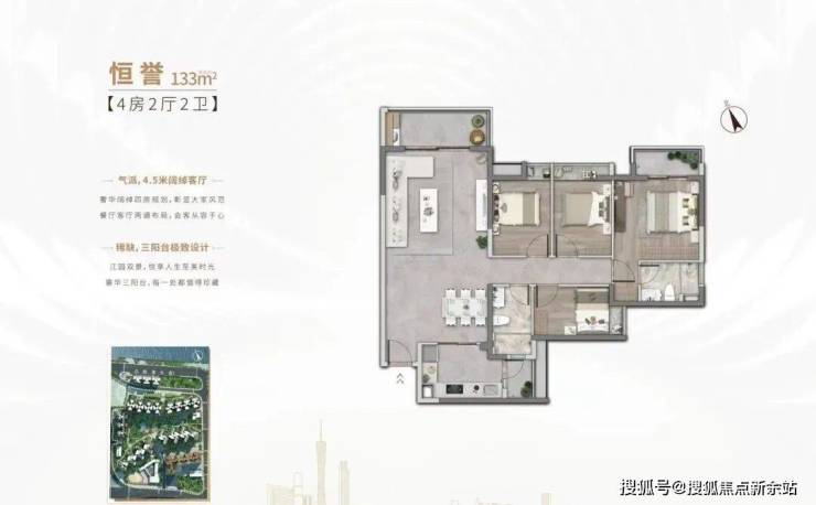 5.【133㎡稀缺三阳台极致设计】(4.5米阔绰客厅,奢华阔绰四房规划,彰显大家风范;餐厅客厅两通布局,稀缺三阳台极致设计,江园双景,悦享人生至美时光;豪华三阳台,每一处都值得珍藏。)