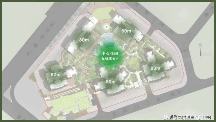 依托红花山低密禀赋,以2.92容积率(住宅地块)、5栋80米高住宅,围合出一片约6500㎡的中央园境。外揽山景,内拥庭院,实现内外双园。楼与楼之间拉开了足够距离——每一户都能拥有充足的阳光和穿堂风,每一扇窗外都是风景,而不是邻居的墙壁。