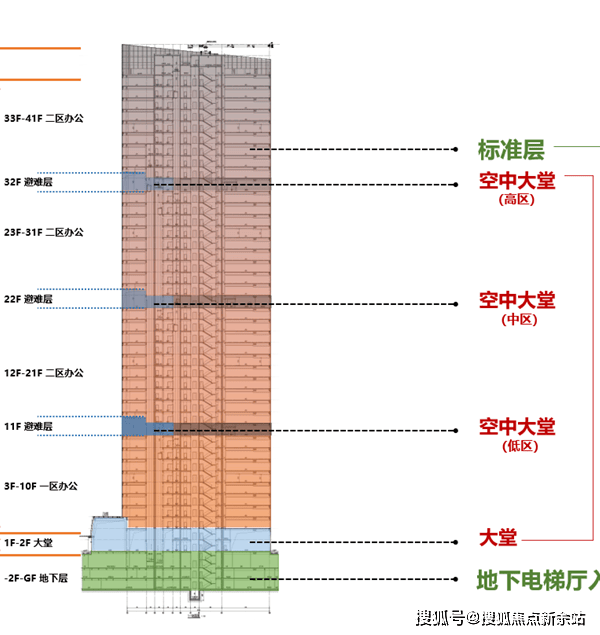 11/22/32楼5米空中大堂,围绕文化创新、科技共享、绿色生态三主题设计,打造企业的第二功能厅。