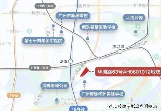 项目坐落于广州中心城区海珠区之心,华洲路旁,西侧为广州海珠湿地公园,南侧邻石榴岗河,距离地铁11号线(在建)和18号线换乘的石榴岗站约1200米,距离琶洲南TOD不到两公里。