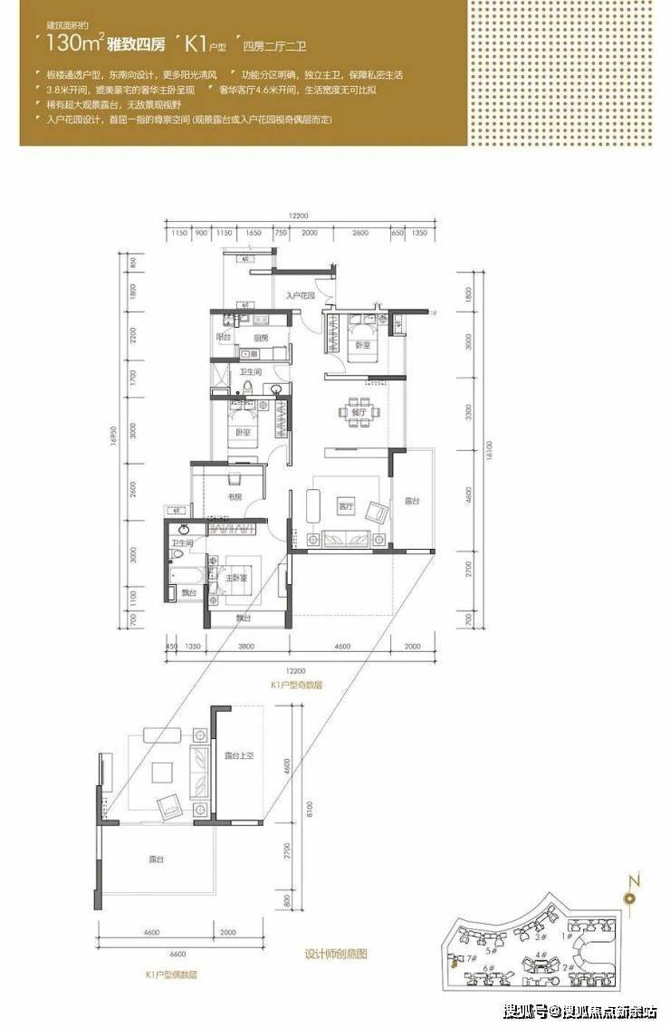 130㎡的4房2厅2卫,设计的是横厅通透格局,客厅4.6米开间,带大入户花园,主卧3.8米开间,东南向设计。