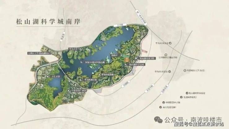 华为以“终端基地”为核心,布局松山湖南岸:华为欧洲小镇、华为培训中心、华为5G实验室、华为研发中心、华为运动健康实验室