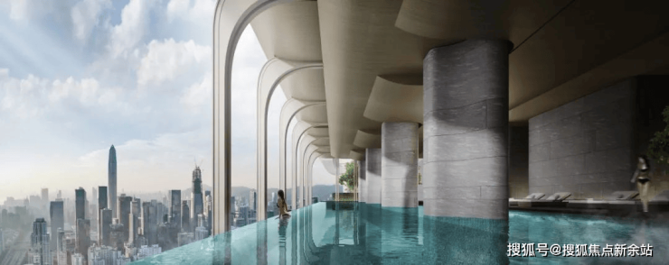 项目在150米高空打造的横跨3栋楼的云端会客厅,正面饱览银湖山、笔架山的绿意葱茏,景观无敌。这个会客厅面积约6000㎡,由云端会所+休闲绿化平台组成,其中云端会所设有私人宴会厅、山景健身中心、无边恒温游泳池、瑜伽房等场所,引入的都是高端品牌,提供的都是星级酒店会所服务