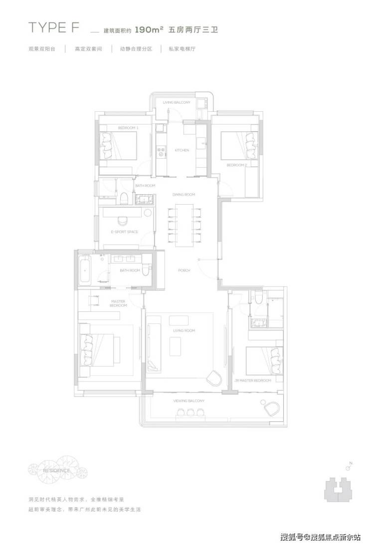 【190㎡户型】南北双园景-光幕三面宽-270度超广角观景视野-经典四叶草布局