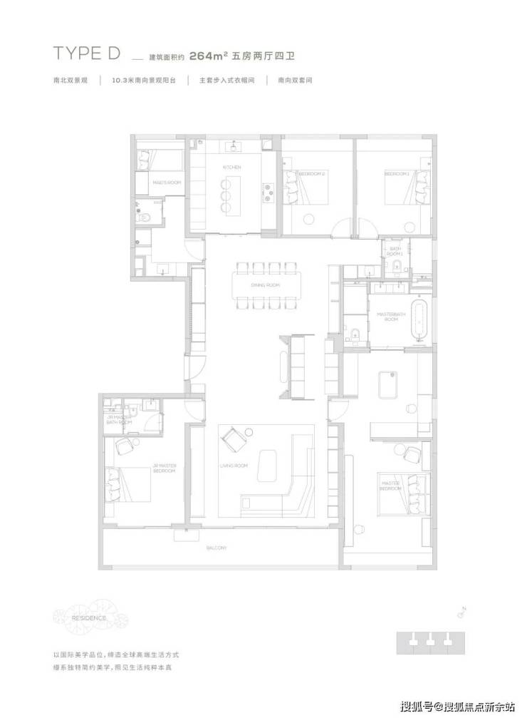 【264㎡户型】10.3米南向景观阳台-南北双景观-主套步入式衣帽间-独创灵动岛设计,生活场景多重切换