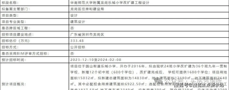 2024年1月一则政府通知,关于:华南师范大学附属乐城小学由现状24班小学改扩建为36班九年一贯制学校,新增12班初中,政府于2024年1月启动学校升级九年一贯制改扩建工程勘查招标计划。(数据来自网络新闻) 的消息一出,直接在龙岗家长群里炸开了锅,要知道这,这对区内基础教育的优质均衡发展可谓举足轻重。彻底弥补乐城小学“一站式基础教育”的遗憾。