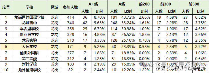 下图为龙岗街道小一、初一积分情况,数据整理自网络、仅供参考,以教育局和学校公布为准。