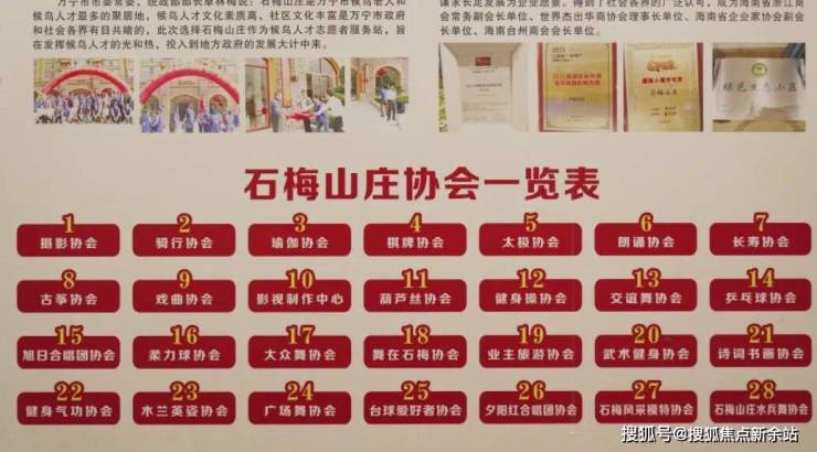 石梅山庄业主已自发成立各类文化协会28个,邻里如知己,老少康乐,唤醒生活温情,尽情地追求和享受精彩的度假生活。