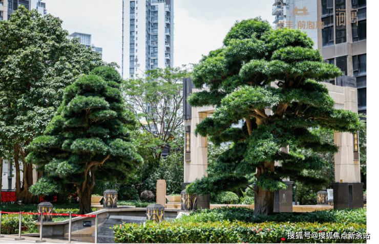 与住宅同享意大利迈丘名师设计,古典主义海洋风格,耗资千万打造深圳罕有罗汉松园林。主入口采用名贵石材精工打造,两侧还种植4棵每颗价值百万的上百年树龄的罗汉松和每颗30万的30年树龄的红继木。