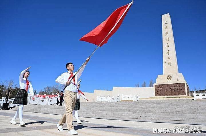 这是2025年4月2日在内蒙古呼和浩特市大青山红色文化公园拍摄的中国少年先锋队出旗仪式。