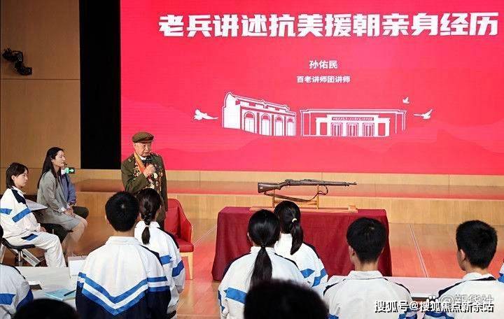2021年10月25日,老兵代表在上海中学的课堂上讲述抗美援朝的亲身经历。这堂特别的思政课是中共一大纪念馆“百物进百校,百讲证百年”活动的第一讲,纪念馆从馆藏中精选100件革命文物,带进学校课堂,以“文物进校园”的形式,用好用活红色资源,赓续红色血脉。
