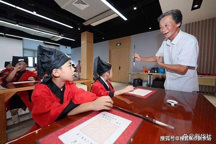 2024年8月28日,浙江宁波市中城小学的教师带领参加开学礼的一年级新生朗诵三字经。中城小学从2008年开始在孔庙内举办传统开学礼,并将其作为学校礼仪教育的一节课程,希望通过这种传统且有特色的开学礼,让新入学的一年级学生感受中华优秀传统文化,为他们留下记忆深刻的开学第一课。