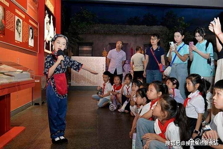 2025年8月7日,在山东省临沂市沂蒙革命纪念馆,沂蒙红孩子文艺先锋队的房沫昕在讲述红色故事《沂蒙红嫂祖秀莲》。2024年9月,位于沂蒙革命老区的山东省临沂市以“传承沂蒙精神”为宗旨组建沂蒙红孩子文艺先锋队,通过歌舞、朗诵、故事讲述、舞台剧等红色主题文艺节目,增强红色文化感染力,不断为红色基因代代相传注入新生力量。