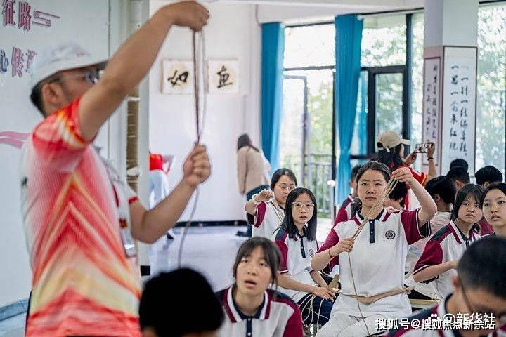 2025年5月12日,云南省昭通市威信县第一中学学生在大屏上红色研学实践基地体验编织草鞋。200余名学生在红色研学实践基地亲手编织草鞋、制作蜡染,并参观了扎西会议旧址、红军长征过云南情景体验馆,在实践互动中重温红色革命历史。威信县立足红色文化资源优势,先后建成扎西会议纪念馆、红军长征标语馆等红色文化展馆,以旧址遗迹为“教室”,以文物史料为“教材”,设计开发多门精品研学课程和线路,在深入开展红色研学系列活动中传承红色基因。