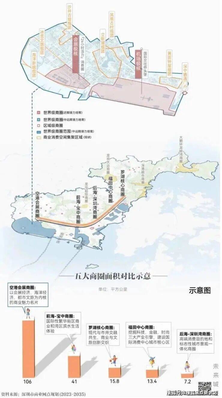 2023年8月,深圳规划了5大商圈,其中四个在深南-滨海沿线范围。只有“空港会展商圈”,另辟一个新的商业未来。