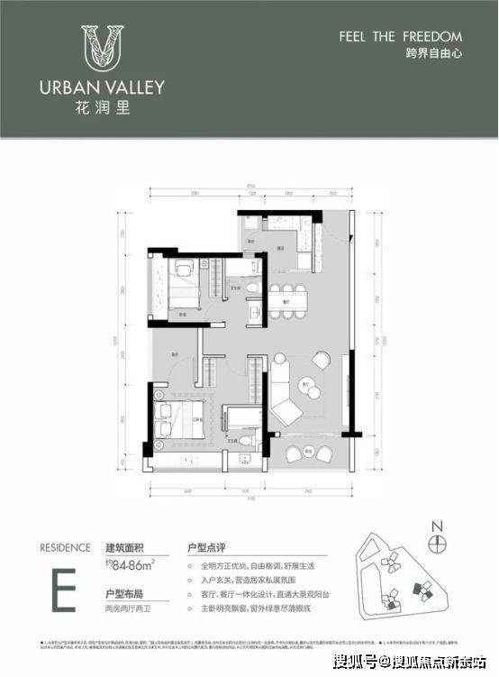 84㎡三房两厅两卫:全明方正格局,餐客厅一体化设计,入户玄关宽约 1.55 米,可打造收纳空间。客餐厅整体开间约 3.5 米,客厅出阳台,可欣赏山景。厨房配有小阳台,可放置洗衣机,客卫干湿分离。主卧套间设计,开间约 2.8 米,带阳台,可改小书房,次卧带飘窗,舒适通透。