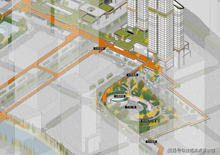 超高层项目常在底部设置简单底商,而本方案却创建了复合型立体底盘,整合商业与公园,通过步行系统实现连通。