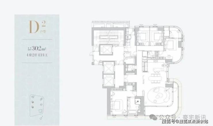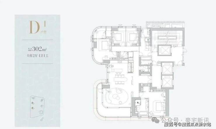 1D栋(1栋四单元)-45层:均为3梯2户,约305㎡,一层两户。
