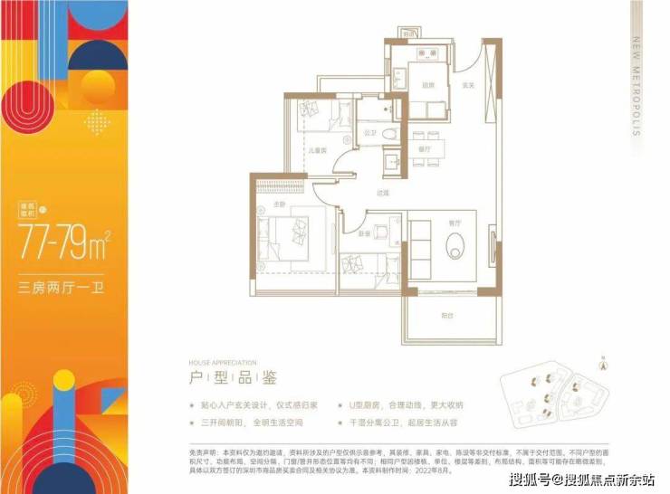 建面约77~79㎡三房两厅一卫