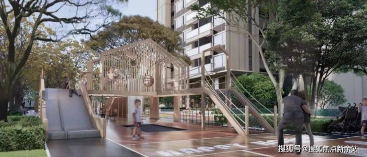 阳光大草坪+度假式多功能亲子泳池+元气运动场+模拟中考专属训练场