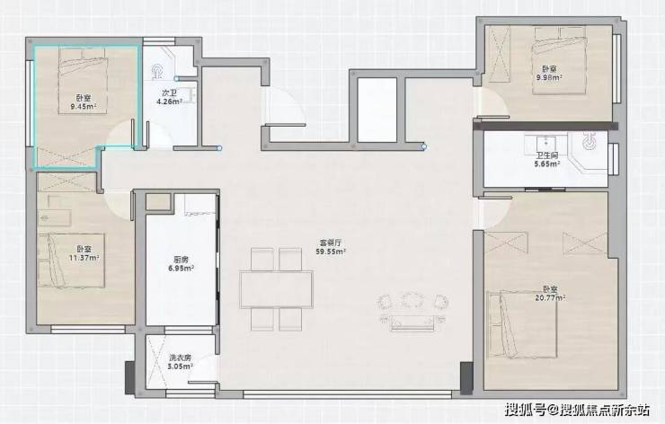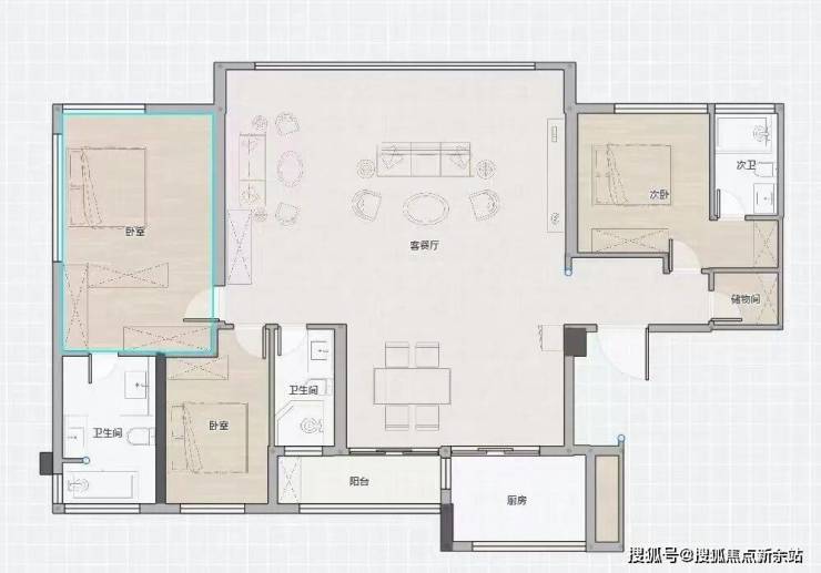 133㎡大平层,四叶草+横厅设计在广州独一无二,客厅甚至不需要打通,就能实现约7.4米大宽厅,媲美170㎡大平层。