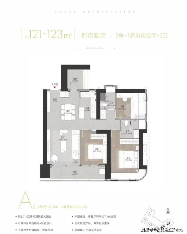 项目包含住宅、公寓、写字楼、酒店、商业、教育、公园等多种业态。目前在售的是一期的03地块由4栋住宅和2栋公寓组成,占地面积 21889.28㎡,建筑面积约16.8万㎡,容积率约8-9,车位比1:1.3;即将加推的二期是由2栋住宅+商业+办公组成。