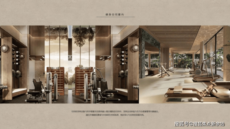 其中,健身区沿建筑幕墙布置有氧区,配备顶级设备;固定力量区与拉伸区相邻,满足专业训练需求。