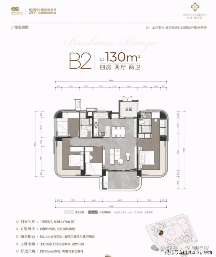 湾啟紫荆府,由招商集团打造,总占地面积约1.49万㎡,总建筑面积约10.6万㎡,计容建筑面积约6.68万㎡,容积率4.47,绿化率30.01%,共规划3栋总高36-37层住宅,其中1栋1单元/2单元住宅36F,2栋住宅37F,还配建有1所18班幼儿园。总规划485户,全部都是商品房住宅,4梯5户,地下室有2层,规划停车位597个, 车位占比1:1.23。