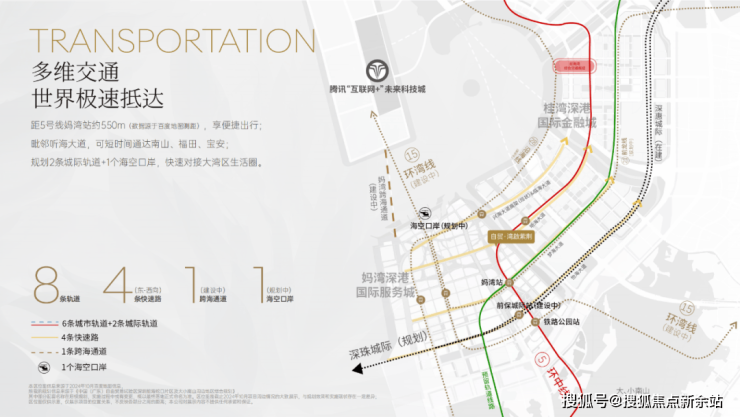 湾啟紫荆府距离5号地铁线“妈湾站”约550米,步行5分钟即可到达,1站到铁路公园站可换乘15号地铁线,深惠城际“前保站”距离约1公里,便捷通行,毗邻听海大道,快速通达南山,福田,宝安。