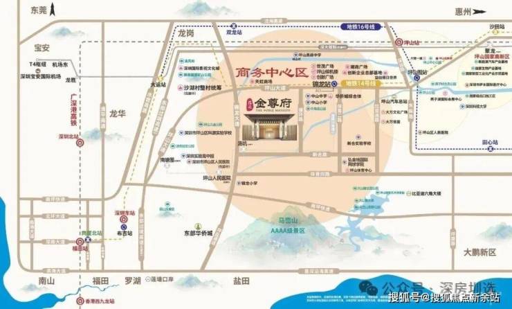 金尊府距14号快线锦龙站约600米,4站大运,12站即抵福田岗厦北;一站换成地铁16号线,直抵坪山高铁站。