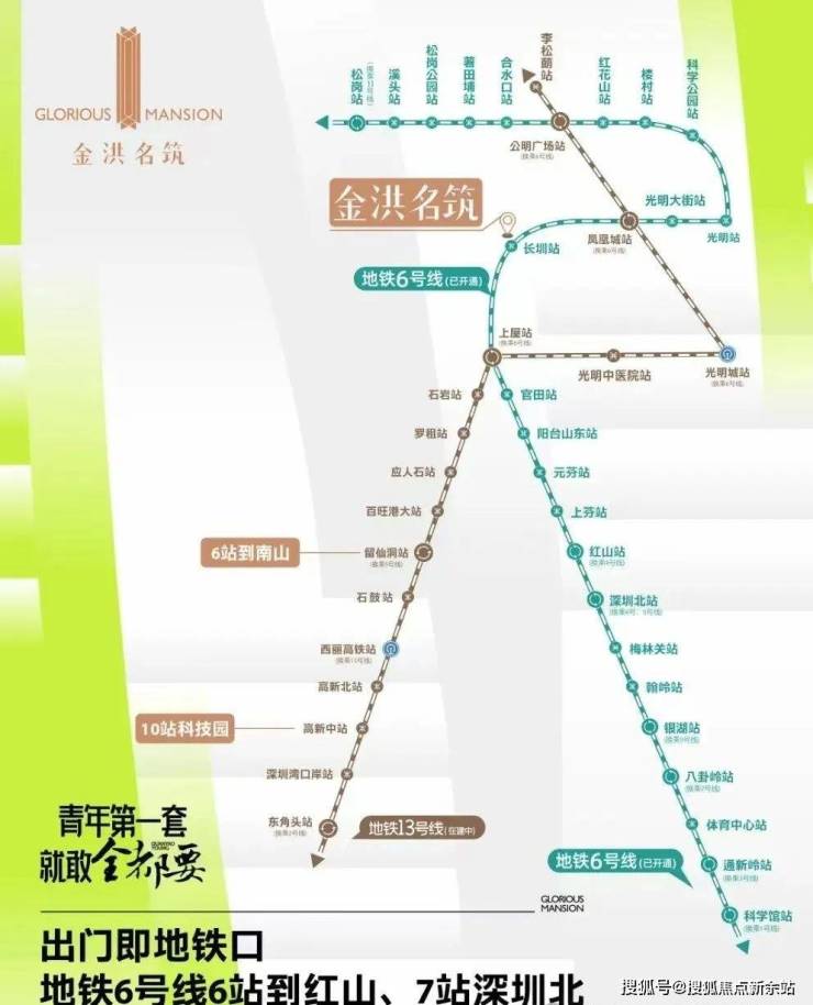 金洪名筑是地铁6号线长圳站,一站换乘13号线,南山留仙洞基地6站(大疆无人机总部)9站抵达高新北科技园站,深圳湾口岸过关也方便6号线终点站是福田方向,7站深圳北