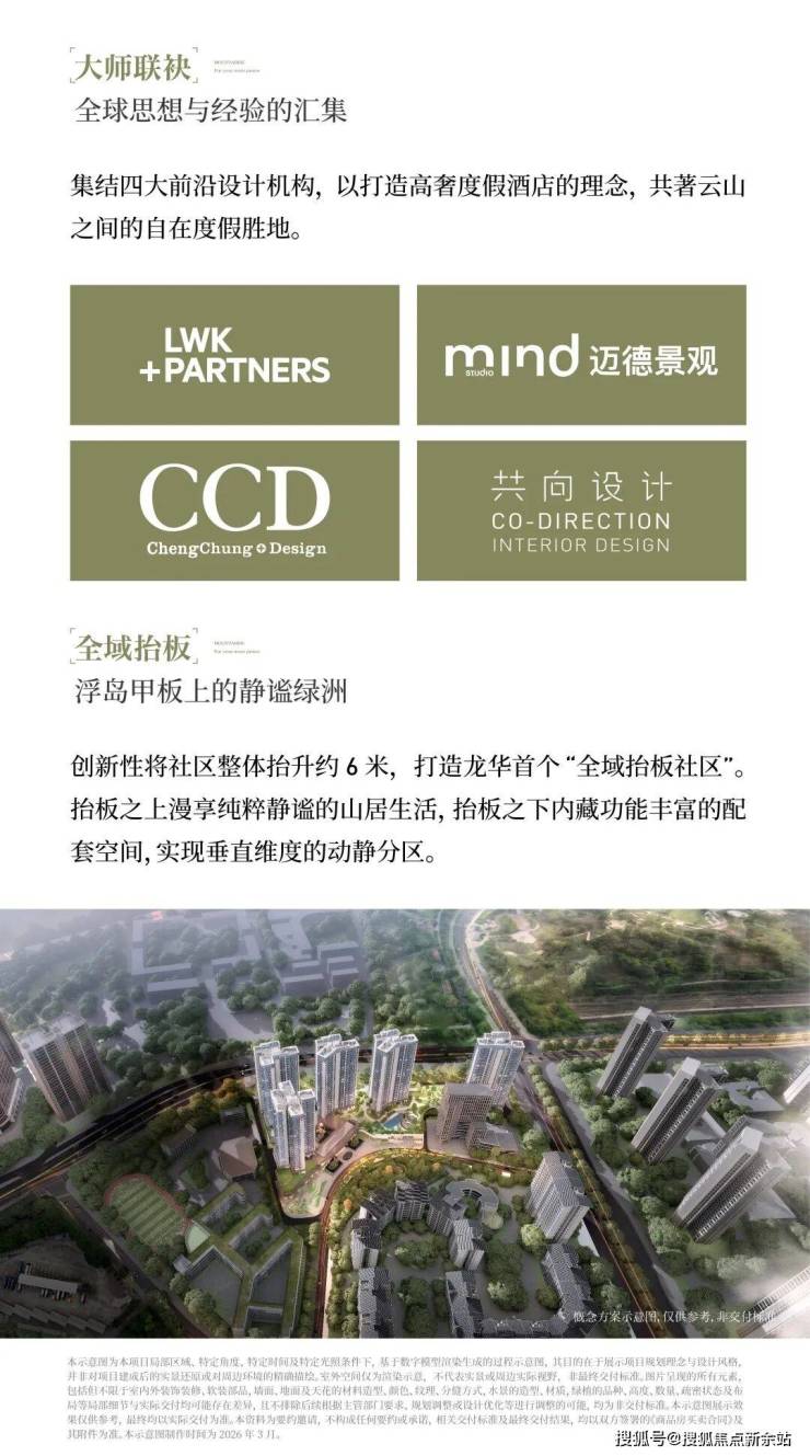 ·全域抬板设计:创新性将社区整体抬升约6米,打造龙华首个「全域抬板社区」。抬板之上漫享纯粹静谧的山居生活,抬板之下内藏功能丰富的配套空间,实现垂直维度的动静分区。