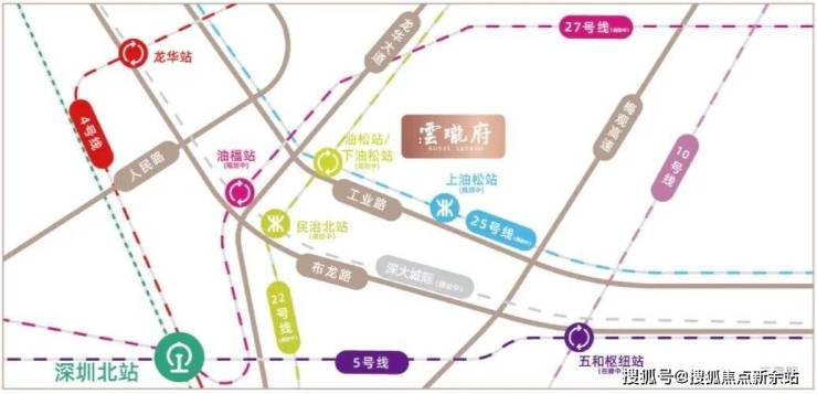 6地铁:22号线油松站(规划中)、25号线上油松站(规划中)、下油松站(规划中)、27号线油福站(规划中)于此汇聚,近邻五和站轻松换乘5号线、10号线,速达4号线龙华站,6地铁交汇,高效通达香蜜湖、前海等城市核心区域。