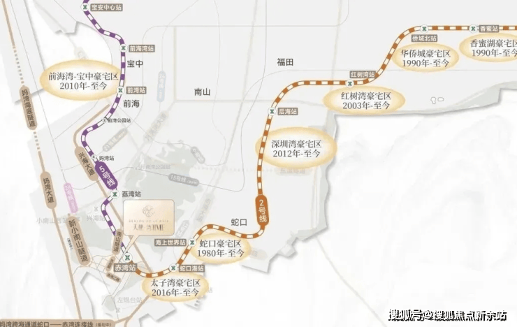 项目距2号线(豪宅线)与5号线(发展线)首发赤湾站约300m(直线距离),从此,坐地铁而不是站地铁,未来新小南山隧道(预计2027年竣工)、望海路升级等重大交通配套持续落地,咫尺间连通蛇口、前海。