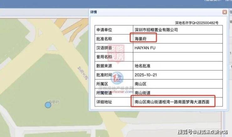位于前海桂湾的招商地块(宗地号为T201-0232)定名为“海晏府”。