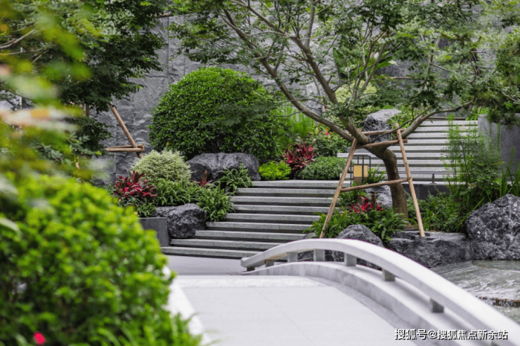 同时,借鉴了岭南四大名园之一的“可园”,用现代手法重新演绎,建造出一座约3.4万平方米的岭南东方诗意园林景观,利用场地高度差特点,采用叠石理水的传统造园手法,打造青石飞瀑相依的场景。