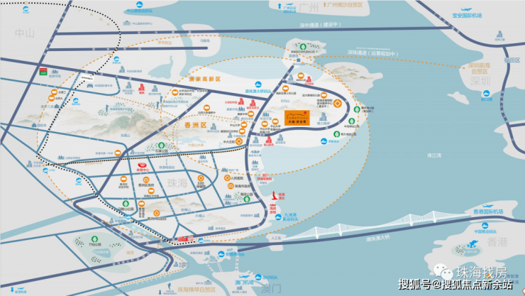 凤凰山隧道、兴业快线贯通主城,港珠澳大桥,让粤港澳便捷都市圈触手可及;深中通道(建设中)、深珠通道(规划中),完美对接深圳前海;广珠轻轨、广州地铁18号线(规划中)直通广州南沙自贸区。香港、澳门、广州、深圳、珠海金湾五大机场畅达世界。