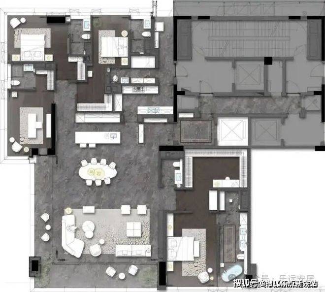 除了开阔的公共空间,每个卧室均采用套房设计,配置了单独的卫生间,保护了家庭成员间的隐私。