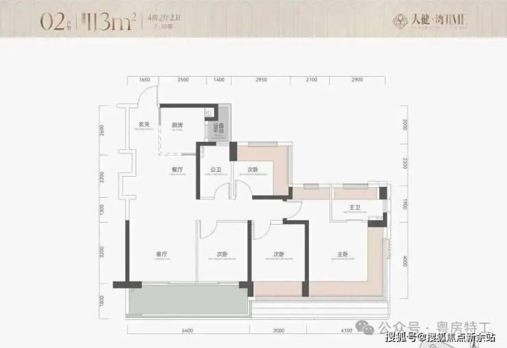 113㎡4房2卫,竖厅户型,朝南看海,6.4米宽大阳台;