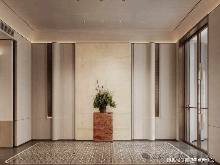 而电梯厅则以高级地砖铺就素雅底色,线条简洁流畅,留白处尽显东方意境,无声传递着 “少即是多” 的雅致格调。