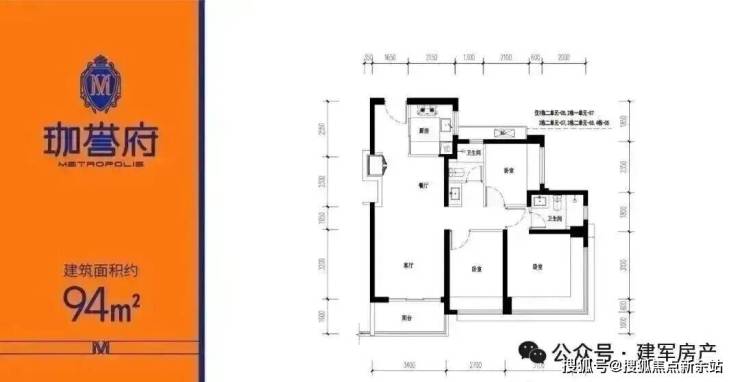 | 约94㎡(横厅)三房两厅两卫【总价约498-521万】
