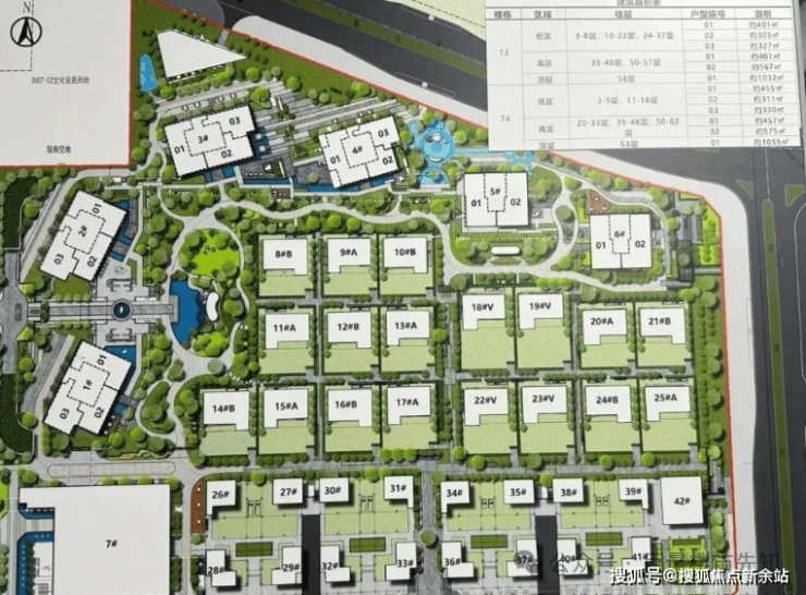 由4栋51至63层3.6-3.9米层高的纯居住奢装交付地标、两栋4.5米层高的小高层,35栋独栋,全景幕墙、宽景阳台。