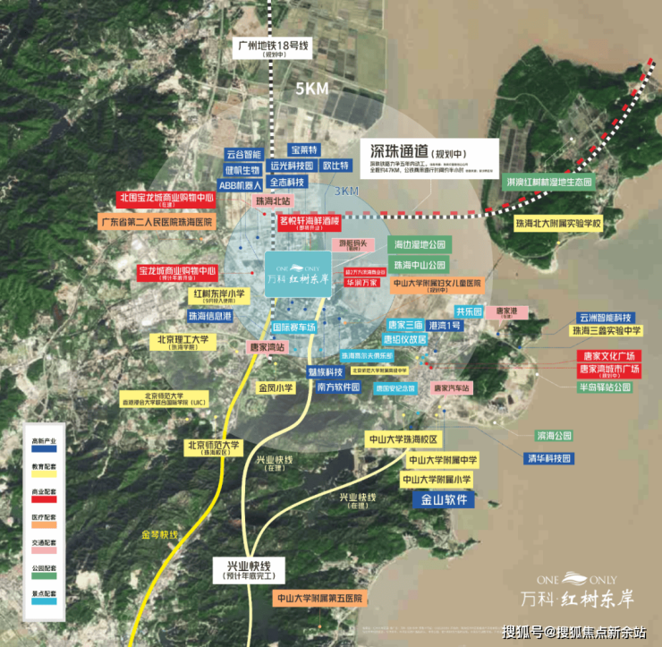 万科红树东岸位于珠海高新区金星路228号,距深珠通道规划落脚点约2km,距兴业快线(预计年底通车)约3km。
