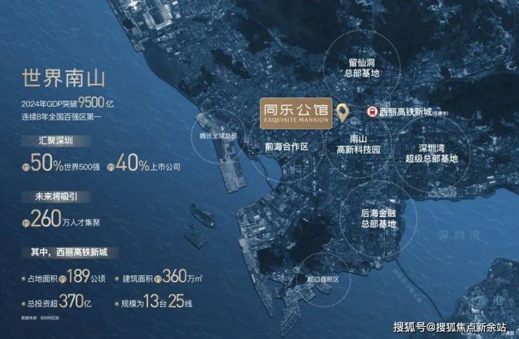 同乐公馆,位于深圳南山区南头街道同乐社区中山园路229号,地处南山区与宝安区交界处,毗邻中山园路与南坪快速交汇处北侧。项目占据"南山科创芯"核心位置,是深圳湾-科技园-西丽科创中轴的关键节点,直线距离仅3公里范围内覆盖科技园、前海自贸区及留仙洞总部基地三大产业核心区。西丽高铁新城(在建中,预计2028年投入使用)的规划进一步提升了区位价值,该枢纽将形成"4高铁+2城际+4地铁"的超级换乘网络,规模超过深圳北站,成为全国最大的轨道交通换乘站之一。