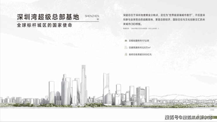 深超总被赋予打造全球城市"巅峰之作" ,"彰显中国气派的全球标杆城区"的战略定位,是世界级滨海客厅,代表国家参与全球城市竞争的核心引擎。目标打造全球总部集聚区、国际交流中心、都会文化高地为一体的未来城市