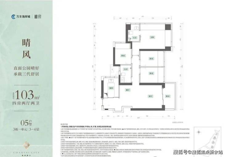 万丰海岸城B区首发之作 新规户型超高实用率南北向点式排布,保证每栋每户通风采光,东向无遮挡公园景观视野